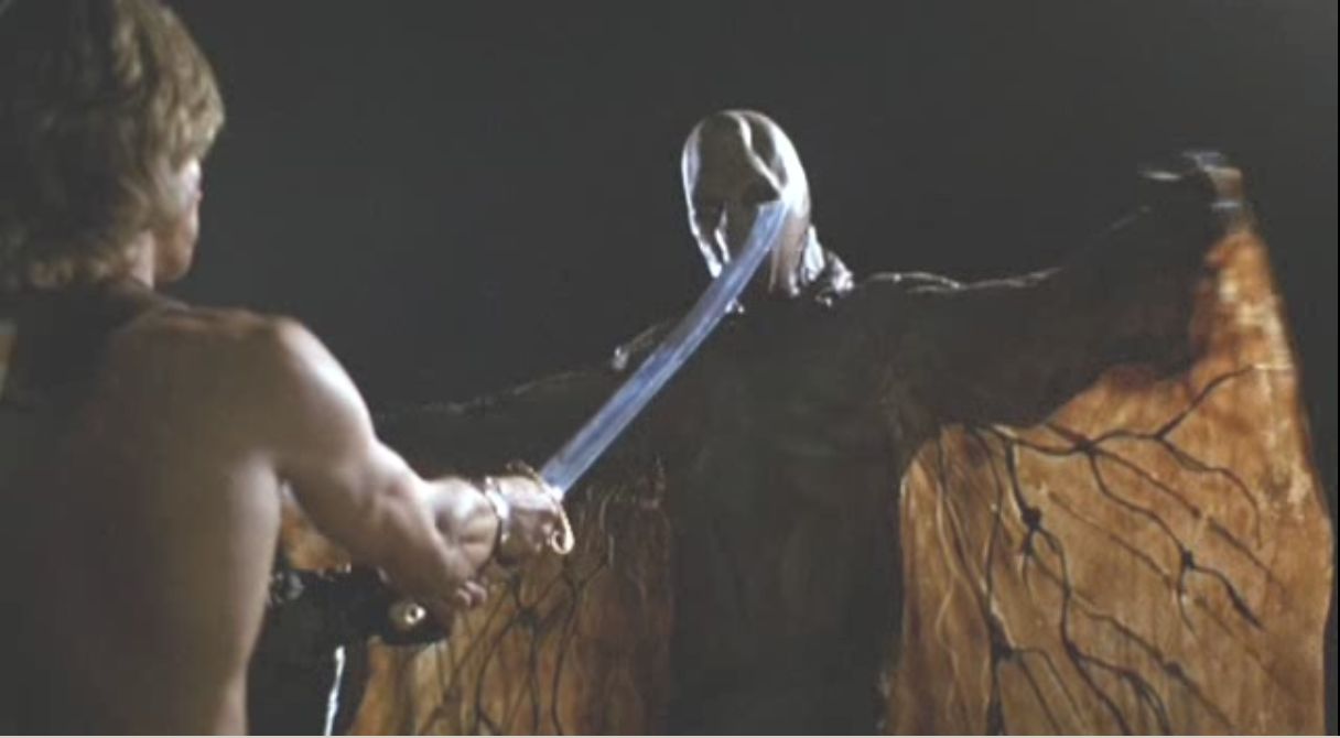 Have you ever seen that awesome movie from the 80s called BeastMaster? Rip Torn STILL gives me nightmares throwing toddlers into a pit of fire. Super weird. If you have, then you would probably remember those monsters that pop up and spread their veiny wings and wrap them around the enemy in front of them. They jiggle them and after they are done a bunch of goo and bones fall out of their embrace. Yea, that’s this dress. Here’s a picture of those monsters for comparision: