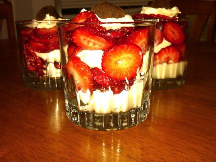 4. Layer berries and cream and garnish with a chocolate truffle and voila!