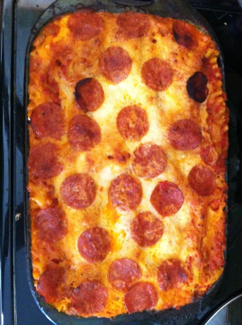 **Make sure this 9×13 pan is DEEP. Your sauce will boil over if it’s not and smoke up the whole kitchen as I just found out.